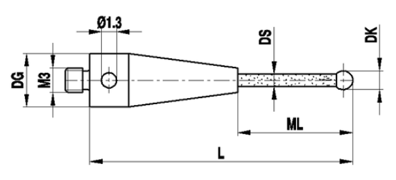 A-5555-0266 M3, шарик из синтетического рубина Ø5 мм, керамический стержень, L 32 мм, ЭРД 19мм, для систем Zeiss RENISHAW