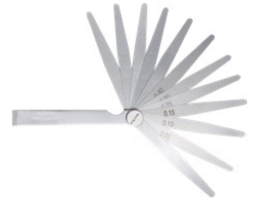 В набор входит 8 стальных пластин (листьев) длиной 100 мм, покрывающих диапазон толщин от 0,05 до 0,50 мм, что делает комплект универсальным для большинства измерительных и сервисных задач