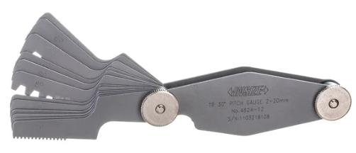 Набор шаблонов резьбовых INSIZE серии 4824-12 предназначен для ручной проверки шага трапецеидальной резьбы с углом профиля 30° (Tr 30°) в диапазоне 2 мм – 20 мм. Комплект содержит 12 профильных лепестков, позволяющих оперативно сверить шаг резьбы на наружных и внутренних резьбовых поверхностях при подготовке, контроле и наладке резьбообразования. Инструмент изготавливается из углеродистой стали с маркировкой каждого лепестка для удобства идентификации.