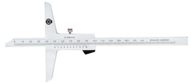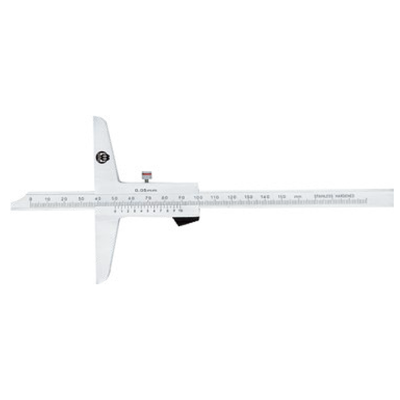 Шкала и нониус имеют матовое хромированное покрытие, обеспечивающее чёткое считывание показаний. Двойная шкала позволяет использовать инструмент также как обычный глубиномер. Поставляется в пластиковом футляре.