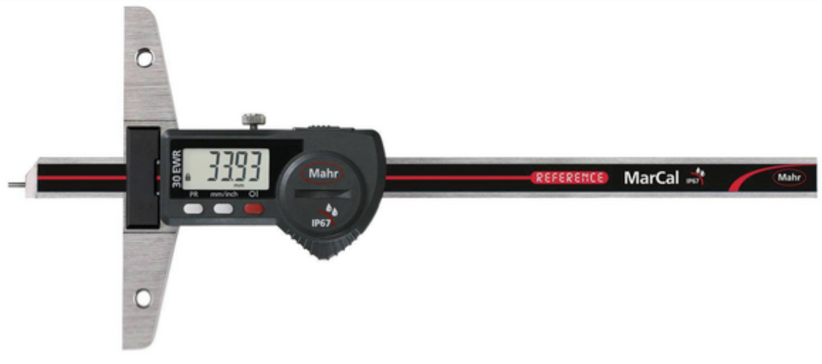 Цифровой штангенглубиномер MarCal 30 EWR 300 × 0,01 мм от MAHR — это высокоточный измерительный инструмент для контроля глубин отверстий, пазов, уступов и других углублений в деталях. Он сочетает надёжную механическую конструкцию из закалённой нержавеющей стали с современной электроникой и имеет степень защиты IP 67 для устойчивой работы в тяжёлых цеховых условиях.