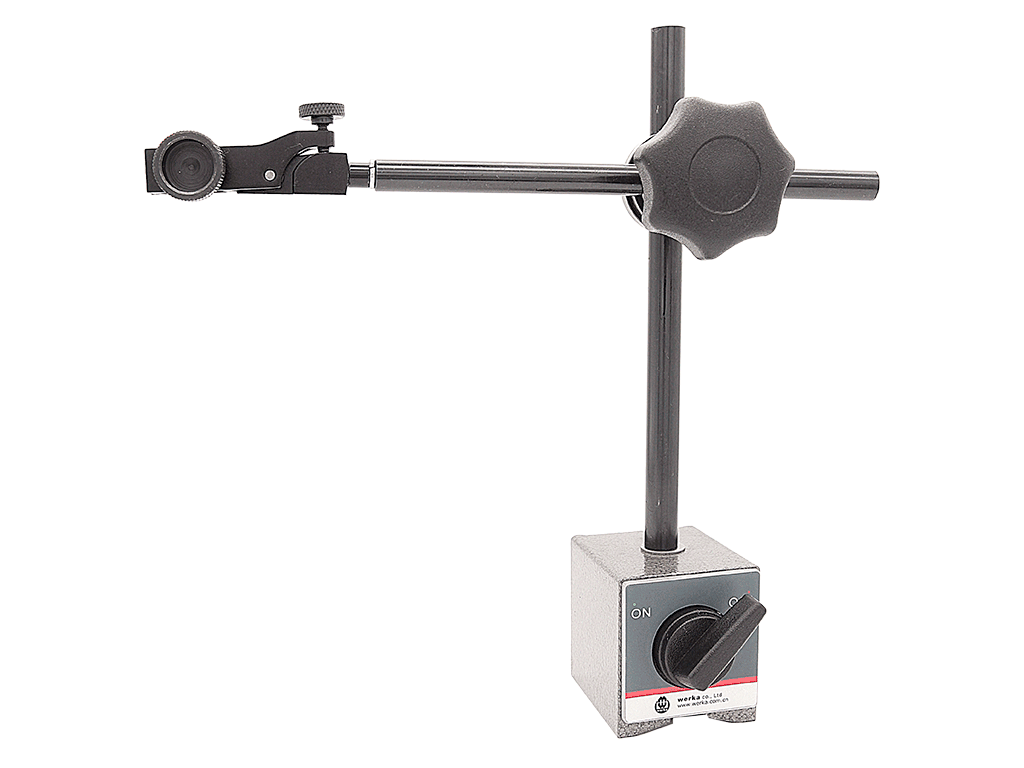 Штатив Werka 7131-100 с магнитным основанием обеспечивает сверхнадёжную фиксацию измерительных приборов при работе. Конструкция позволяет использовать индикаторы с хвостовиком диаметром 6 мм или 8 мм, а также индикаторы с ласточкиным хвостом. Благодаря тонкой регулировке можно точно выставить положение прибора, что особенно важно при проведении точных измерений.