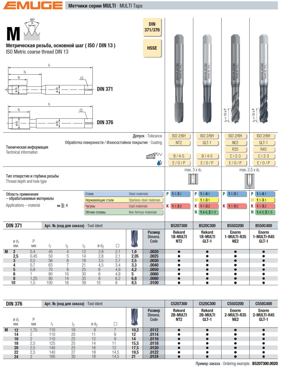 B5207300.0080 Метчик M8x1.25 HSSE прямые канавки (DIN 371) EMUGE FRANKEN
