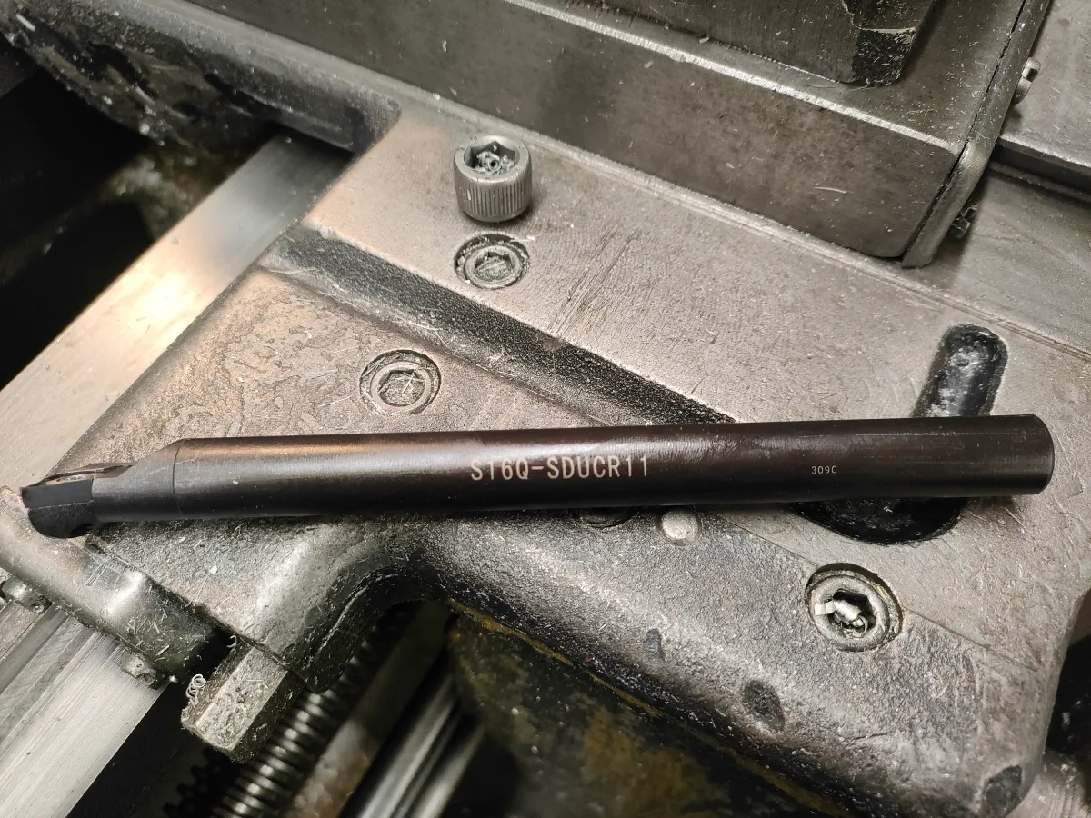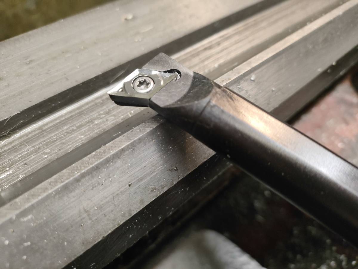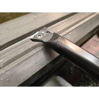 Хорошее качество пластинки, на резец s16q-sducr11 встала как родная. На скорости 560 об/мин и подаче 0.07 мм/об даёт хорошее качество поверхности. Можно заходить в материал перпендикулярно оси и сразу формировать канавку+фаску под выход резьбы.