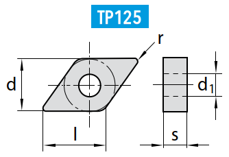 Сменная твердосплавная пластина DNMG110404-PF2-TP125 предназначена для чистовой обработки стали. Ромбическая форма 55° (D) и отрицательная геометрия обеспечивают устойчивость к нагрузкам и изломам при тяжелом точении. Сплав и геометрия режущей кромки оптимизированы для обработки конструкционной стали, обеспечивая надёжный контакт кромки с поверхностью заготовки.