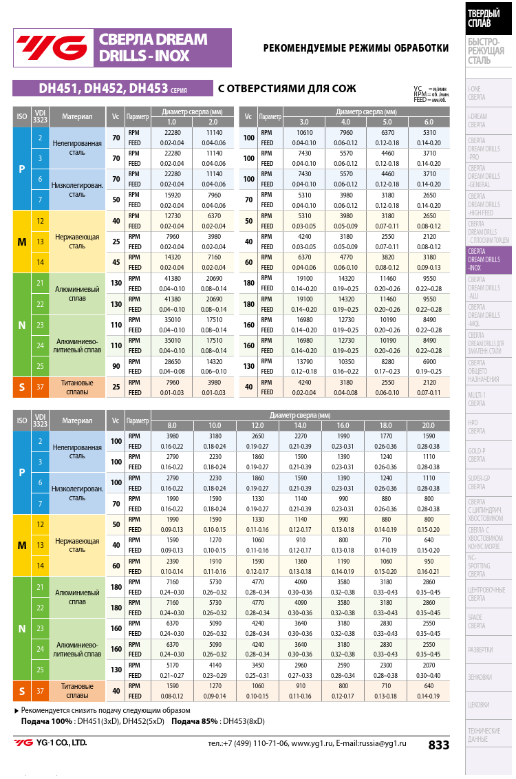 Сверло твердосплавное с внутренней подачей СОЖ DH452085, глубина сверления 5D, серия DREAM DRILLS INOX, YG-1