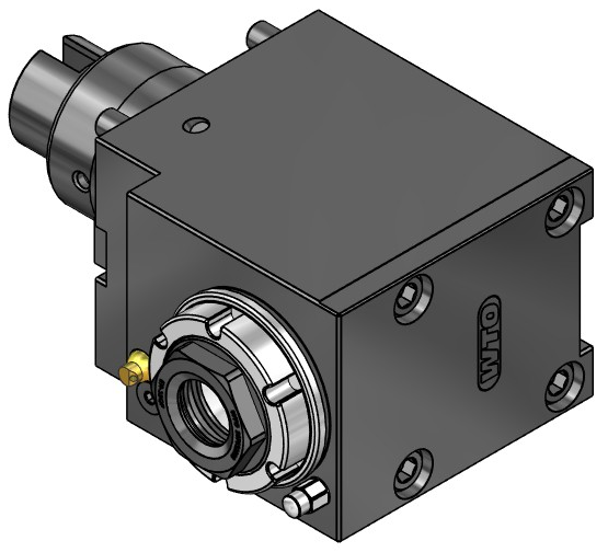 Радиальный приводной блок WTO 420532020-60, выполненный в версии TT60A, оснащён системой QuickFlex® и предназначен для установки цанг ER32. Это решение предназначено для бокового привода инструмента — фрезерования, сверления или растачивания сбоку от оси. Конструкция обеспечивает стабильную передачу крутящего момента, минимальное биение и возможность быстрой смены инструмента посредством системы QuickFlex.