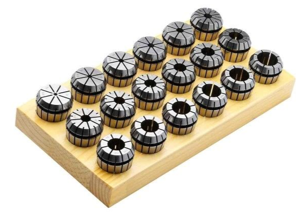 Набор герметичных цанг предназначен для закрепления инструмента с цилиндрическим хвостовиком в цанговых патронах системы ER32 с возможностью внутреннего подвода СОЖ. Комплект включает 15 цанг (3-4-5-6-7-8-9-10-11-12-14-15-16-18-20), перекрывающих стандартный диапазон диаметров. Используется на CNC-станках при операциях сверления, фрезерования и развертывания с подачей охлаждающей жидкости через инструмент.
