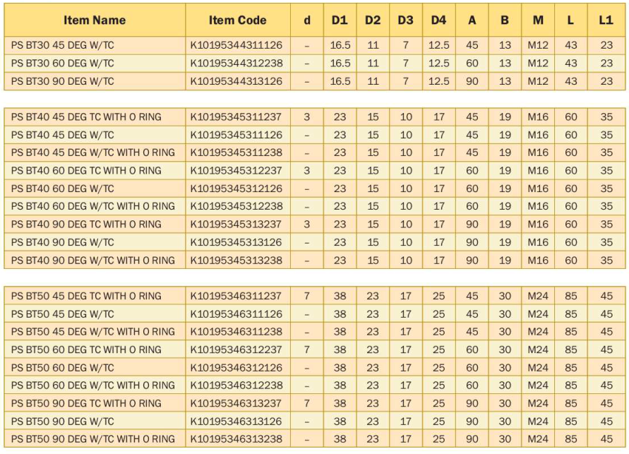 K10195346311237 Штревель PS BT50 45 с отверстием для СОЖ и уплотнительным кольцом (M24, l1=45мм, L=85мм) KTA
