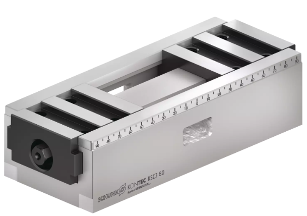 Тиски SCHUNK KSC3 80-190 (артикул 1514208) — это высокоточные центрирующиеся тиски без системы зажимных кулачков. Они предназначены для использования с индивидуально подобранными зажимными элементами, что позволяет адаптировать тиски под конкретные задачи и детали.